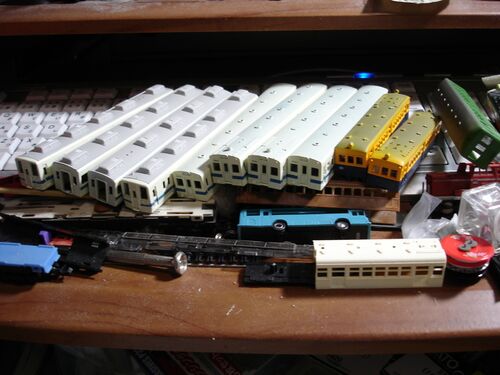 来週末に向けてかなり急ピッチで乱造中です。 結局、急行灯は上にあげた方がいいと判断して小加工 手を付けて放っておいた9000とか 買ったまま放置していた1800も製造開始 1800は幕板の広がりを考えて雨どいをカット 前面窓の小さいイメージを重…